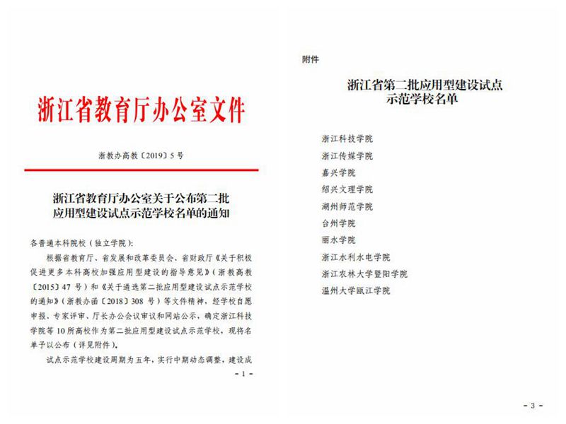 近日,浙江省教育厅办公室公布第二批应用型建设试点示范学校名单,学校入选。