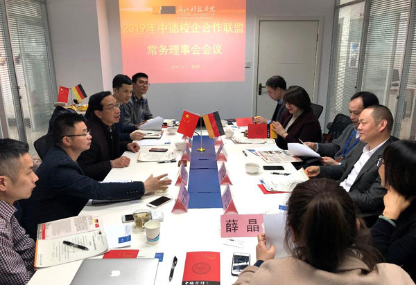 3月7日,2019年中德校企合作联盟常务理事会议在德国石荷州经济技术促进中心杭州办事处召开,联盟副理事长、我校副校长郑友取主持会议。