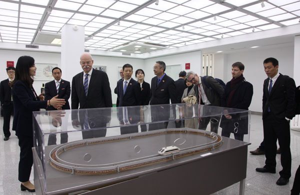 葛策发表了热情洋溢的致辞。他首先表示,非常荣幸受邀来浙江科技学院参观访问,并受聘为浙江科技学院名誉教授。葛策说,德国工业技术的发展离不开高层次应用型人才的培养,应用科学大学功不可没。他很高兴看到浙江科技学院与德国应用科学大学之间有着悠久的合作历史、大范围的合作领域、深层次的合作项目、以及丰硕的合作成果,在两国教育、科技和文化方面的合作发挥引领作用。葛策认为,中德两国需要进一步加强人才教育的合作来面对未来的挑战,两国工业和经济能否取得成功在很大程度上取决于像浙江科技学院这样的示范性应用型高校的努力。他期待浙江科技学院在中德两国教育合作方面发挥更大作用,为未来中德两国社会经济发展注入强大推动力。葛策最后感谢学校将中德合作馆作为中德合作成果的窗口和友好关系的象征,向大众开放展示。