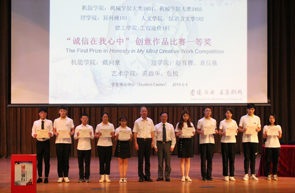 会上对安吉校区2018-2019学年进行的各类诚信教育活动及学术诚信履行情况进行总结,公布诚信教育主题班会获奖班级和“诚信在我心中”创意设计比赛获奖名单。班级代表与获奖者上台领奖并进行交流发言,分享他们对诚信的感悟。2019届优秀毕业生代表王亚婷发言,回顾诚信教育实践与党团活动,表示浙科学子要抱着至诚至真之心,勇敢地走下去。