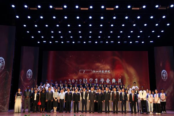 回顾求学生活,本科毕业生代表、应用物理学151王亚婷表达了对学校的感谢和不舍,她说,未来无论身在何处,我们都会为自己是浙科人而骄傲!研究生毕业生代表、2019届化学工程与技术专业范煜,表示要用自己的实际行动诠释学校校训,践行浙科精神,努力成为各行各业的栋梁之才。