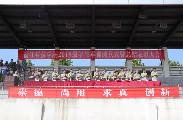 校长赵东福检阅了2019级学生军训团,并代表学校向东部战区75210部队赠送锦旗。校党委副书记周加敏作军训总结性发言。副校长冯军宣读2019级学生军训表彰名单。与会领导为军训嘉奖人员颁奖。