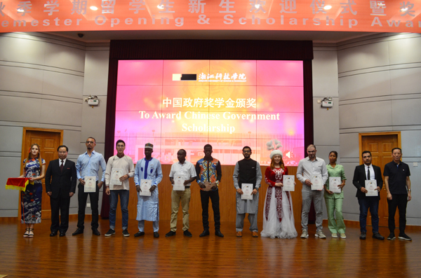 9月20日下午,2019级留学生新生欢迎仪式暨奖学金颁奖典礼在图书馆西报告厅举行。校长赵东福、副校长郑友取,杭州市出入境管理局副局长李征平等出席。