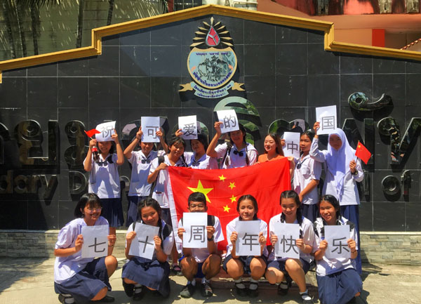 国庆前,学校发起“我和国旗同框”合影活动,引起广大师生积极响应,师生间里掀起一波与国旗合影热潮,大家争相与国旗同框,向祖国表白。水晶剧院、中德楼、西蜜湖、银杏广场、图书馆等地瞬间成为校园最热门的打卡地点。在德国、罗马尼亚、泰国留学生和孔子学院教师也发回了自己与国旗同框的照片。(学生记者 夏黄浩、郑忻宇、楼阳洋、方萌、张之怡、苗珍琦、杨瑜彤、郭佳敏、孙立峰、孙寅、费洋、赵晓雨等 摄)