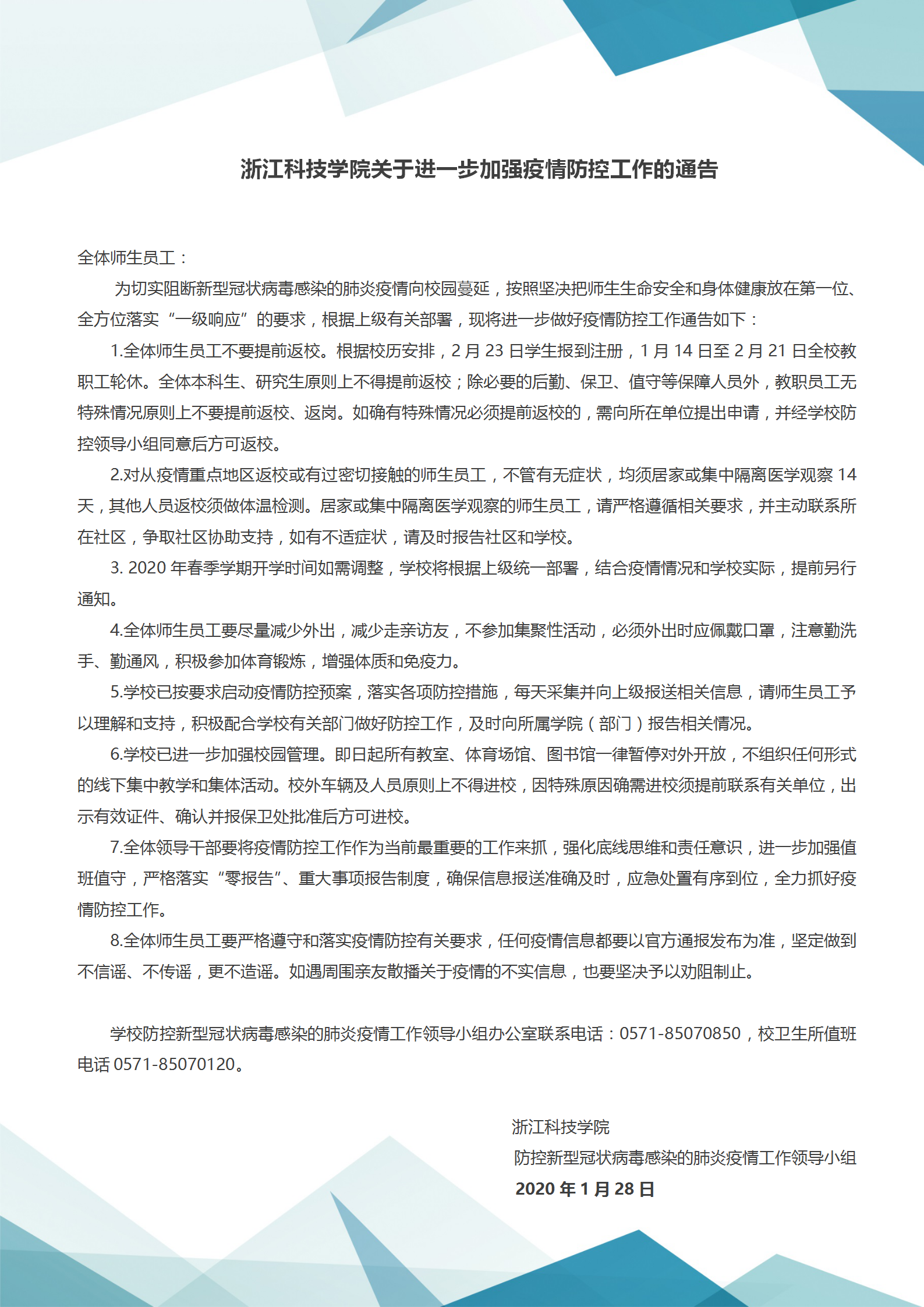 浙江科技学院关于进一步加强疫情防控工作的通告