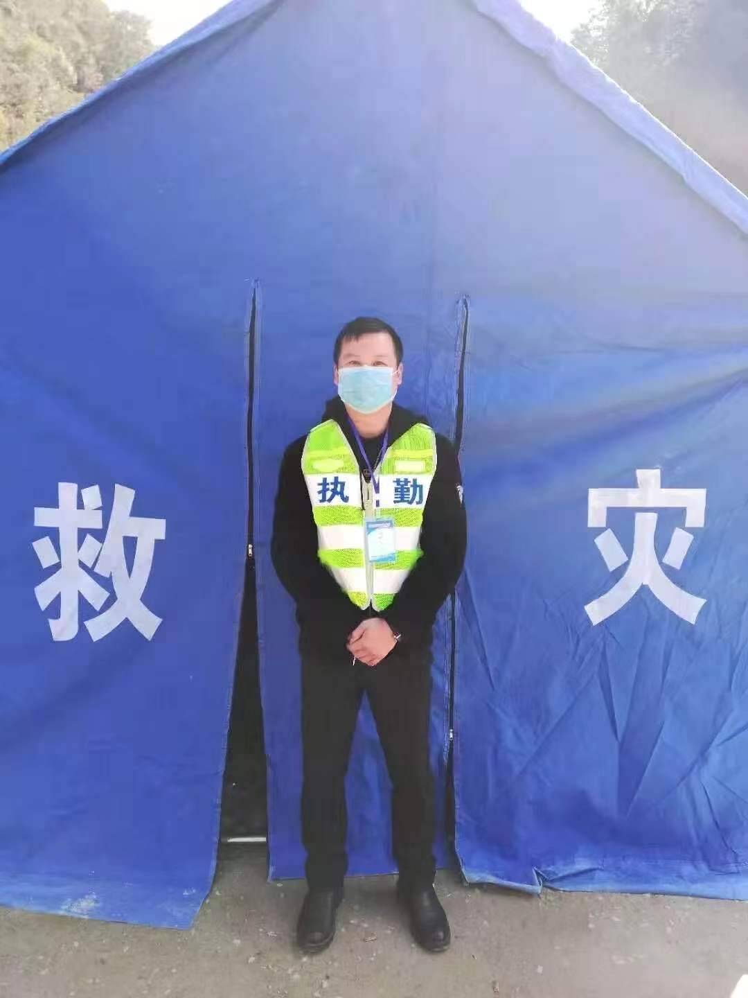 (陈润桦在街道卡口值守)