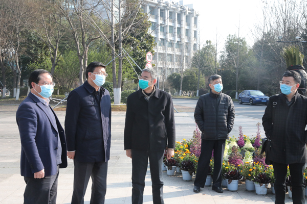 陈根芳一行实地察看了校园门岗管理热成像智能测温系统、集中医学隔离观察点、来华留学生公寓管理等情况。