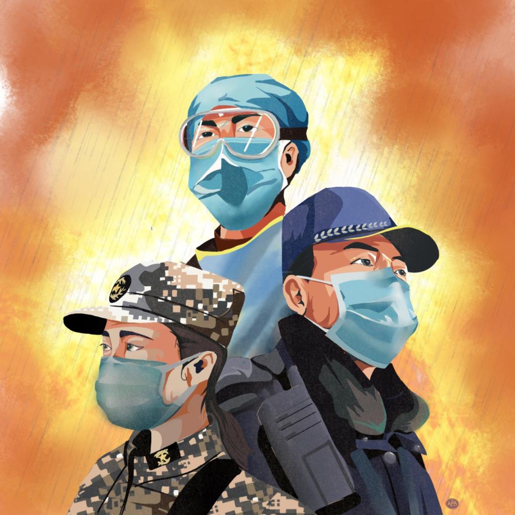 在请战书上按下一个个鲜红指印的白衣天使们,日以继夜不断赶工的建筑工人们,奋战在一线的警员,支援在身后的无数志愿者们,为我们筑起了一道防疫的高墙,白衣、军服就是他们的战袍。无论年龄性别职业,他们都是英雄!向他们致敬!——服设183 林宇晴