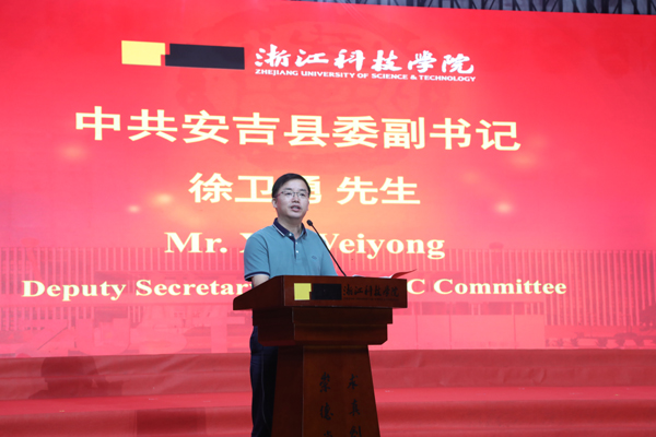 徐卫勇代表安吉县委、县政府和全县人民向来自五湖四海的新同学表示最热烈的欢迎。