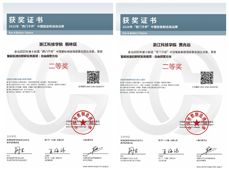 近日,2020年CIMC“西门子杯”中国智能制造挑战赛成果揭晓,机能学院机械设计与制造及其自动化专业18级学生韩林廷、贾兆远等同学组成的“阿尔法骑士”战队在自由探索赛中取得二等奖、初赛特等奖,王伟博、陈洪卿同学组成的“跃动飞翔”战队取得全国初赛二等奖,袁斌获优秀指导老师。