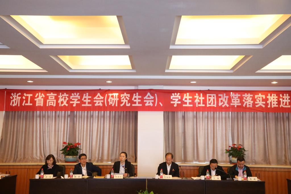 11月4日,浙江省高校学生会(研究生会)、学生社团改革落实工作推进会在我校召开,团省委副书记周苏红,我校党委副书记周加敏、党委委员姜雯等出席会议。会前,校党委书记龚建立与周苏红进行了交流。