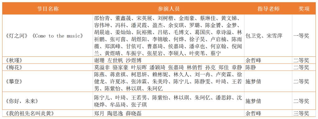近日,2020年浙江省大学生艺术节闭幕式暨颁奖晚会在杭州师范大学举行,我校选送的参赛作品获一等奖1项,二等奖4项,三等奖1项。