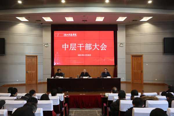 1月28日,学校召开中层干部大会,总结回顾2020年工作,部署新年重点工作思路。校党委书记龚建立讲话,校长赵东福作部署。会议由校党委副书记符宁平主持。校党政领导班子成员、校长助理出席会议。