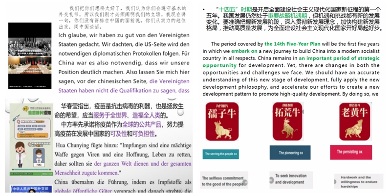 本学期,外国语学院在外语课堂上为同学们设置了“思政周语”环节,将时政内容带入课堂,帮助同学更多了解国情,了解当下社会。学院精心选择每周“思政周语”主题,安排资深教师、骨干教师分别准备英文、德文、法文版材料,全院外语教师将相关内容适时引入外语课堂。截至第8周,三牛精神、脱贫攻坚26个英文字母、李克强总理会见采访全国两会的中外记者的谈话、中美高层论坛、2021年政府工作报告、缅怀英烈、疫苗、国家安全教育日等,都成为“思政周语”的主题。这些内容贴近学生生活和外语学习表达需求,受到同学欢迎。