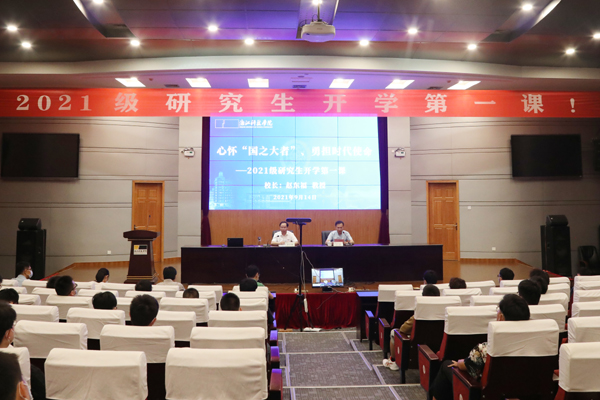 9月14日,校长赵东福为研究生新生上开学第一课,作题为《心怀“国之大者”、勇担时代使命》报告。副校长万健主持。