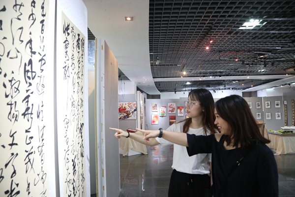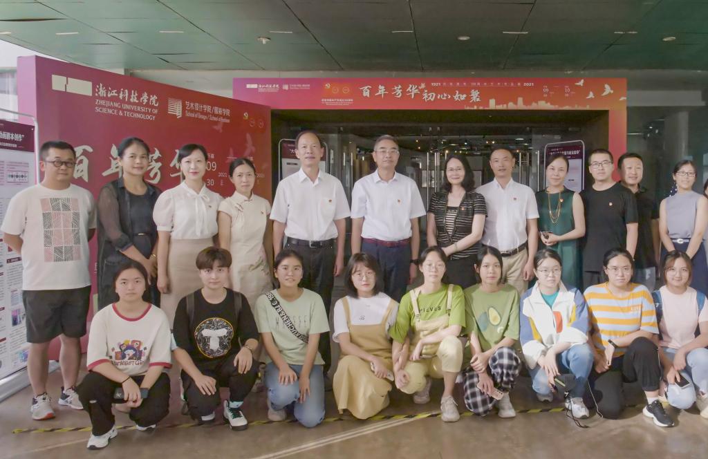 国庆前夕,“百年芳华 初心如磐”师生艺术作品开展。9月30日下午,校党委书记龚建立、校党委副书记周加敏、校纪委书记陆爱华等前往参观。