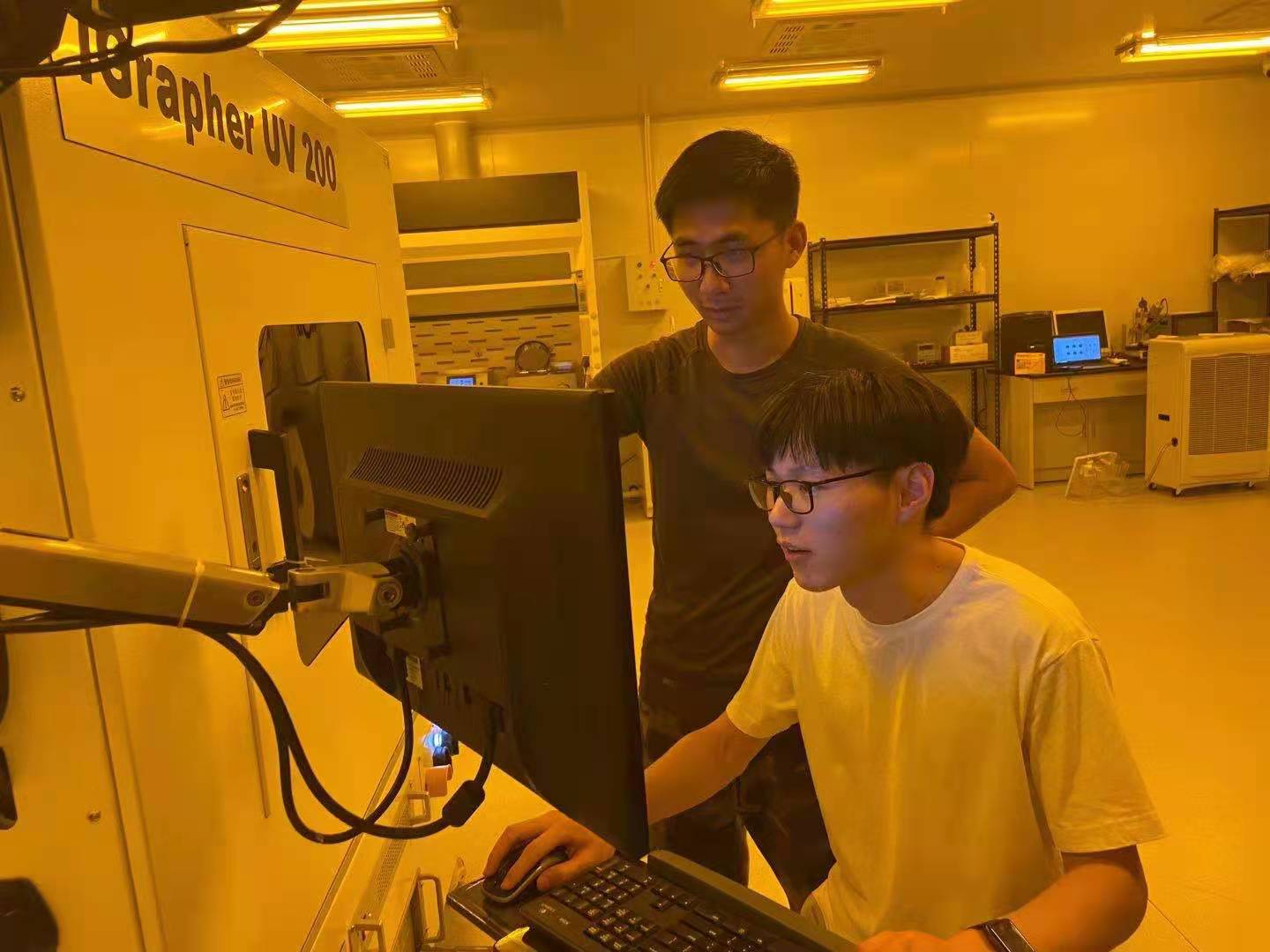 吴震东(右)同学在3D光学与深度感知技术实验室做实验