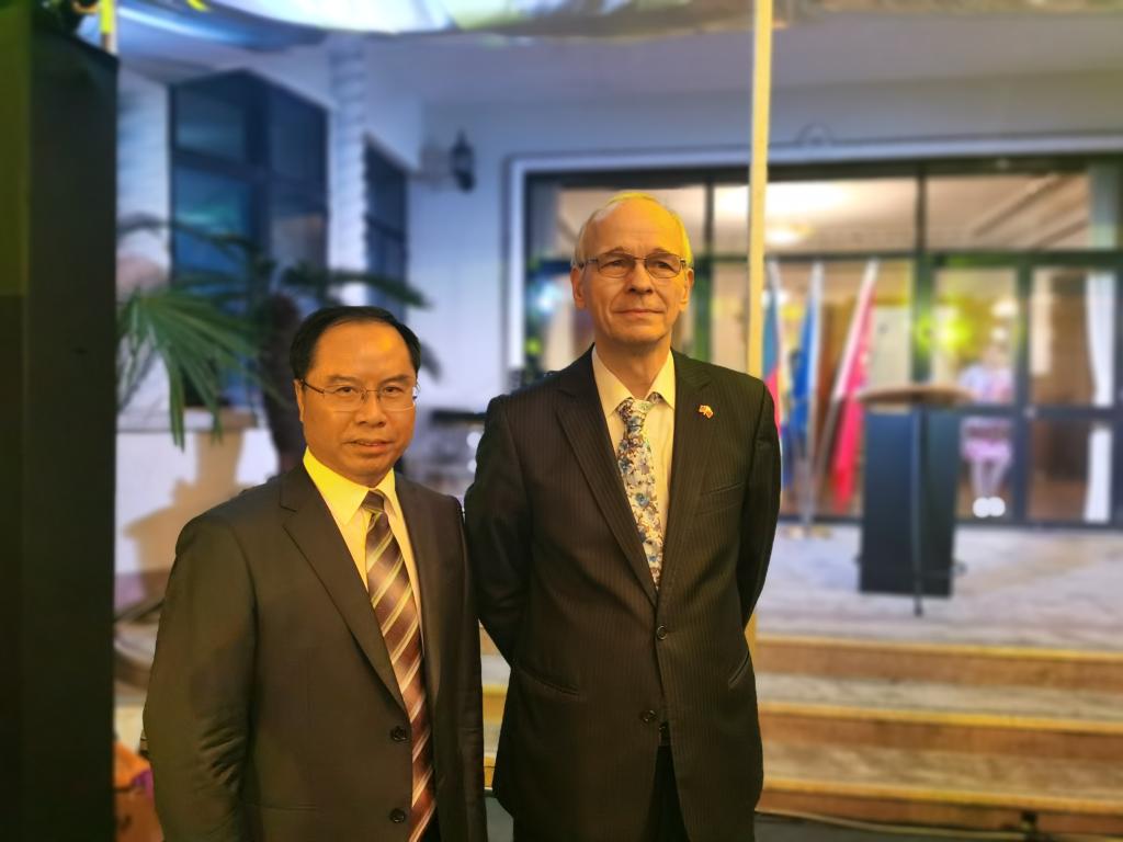 10月12日,德国驻上海总领事馆举办德意志联邦共和国统一周年庆典,应德国驻上海总领事馆新任总领事贺德满(Pit Heltmann)邀请,校长赵东福、副校长单胜道等出席庆典活动。