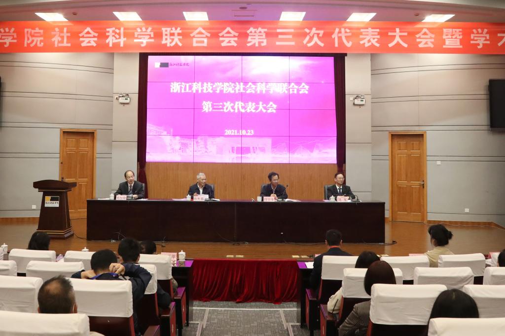 会议审议通过《浙江科技学院社会科学联合会章程》,选举产生第三届理事会理事、主席、副主席和秘书长。冯军当选第三届理事会主席,叶晗、胡余波、姜雯、徐理勤、董颖(以姓氏笔画为序)当选副主席, 伦玉敏任秘书长。