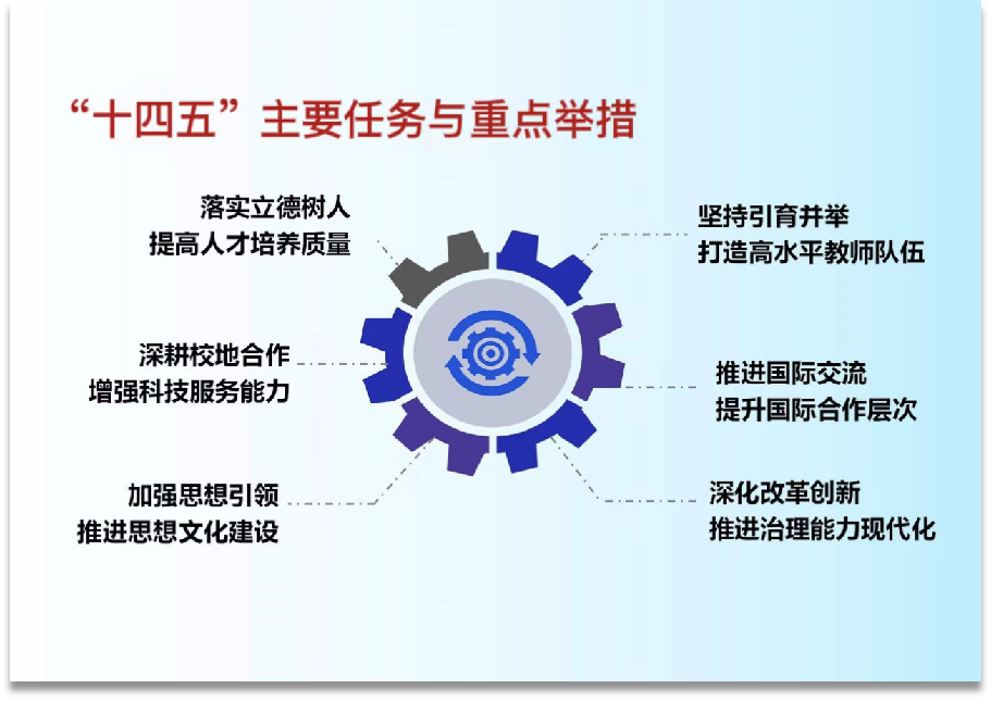 党史学习教育这一年,学校坚持把党史学习教育成效转化为攻坚克难、加快发展的强大力量。立足新发展阶段,贯彻新发展理念,构建新发展格局,加强科学谋划,制订出台学校“十四五”事业发展规划及各专项规划,明确“十四五”学校主要任务、重点举措和主要指标责任分解,推动规划落实落地,为学校“十四五”期间实现高质量发展、高水平建设画好蓝图。