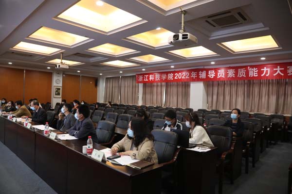 4月15日,学校2022年辅导员素质能力大赛决赛举行,校党委副书记周加敏出席,浙江外国语学院党委学工部部长、学生处处长屠立达,第八届全国高校辅导员素质能力大赛二等奖获得者、浙江大学生物医学工程与仪器科学学院孙幼波,学校相关职能部门和二级学院相关负责人担任评审。