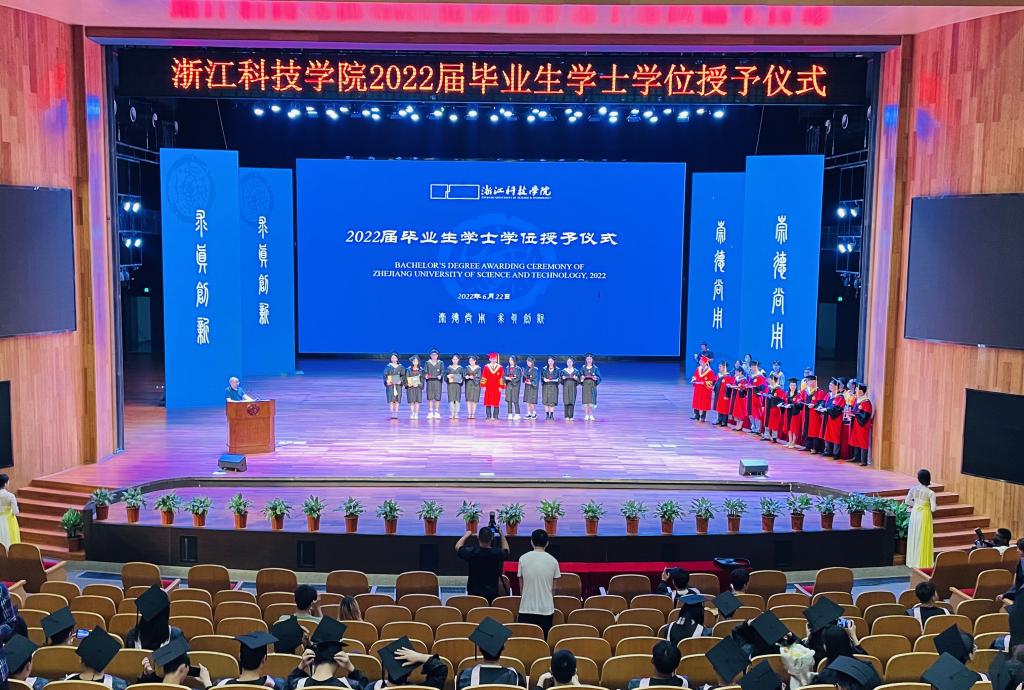 近日,2022届毕业生学位授予仪式举行。校长陈建孟与每位获得学位的毕业生合影。校学位评定委员会委员为每位同学拨正学位帽上的流苏并颁发学位证书。
