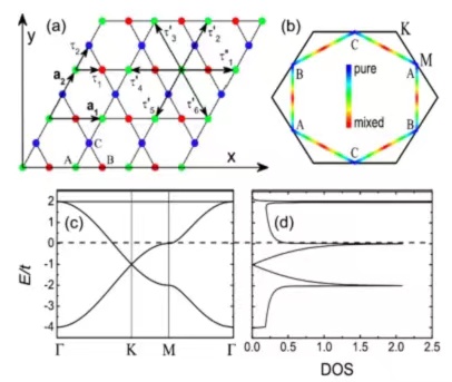 近年来,新型笼目超导体CsV3Sb5的发现引起了研究者的广泛关注,由于其特殊的晶格结构[图(a)],具有二维笼目结构的材料能带中往往具有平带[图(c)]、范霍夫奇异点和类似于石墨烯的狄拉克型色散[图(d)],因而能够诱导产生一系列关联拓扑物态。特别是在范霍夫奇异点(van Hove singularities)掺杂附近,理论预测二维笼目体系可呈现出新奇的超导电性和丰富的电子有序态,还有可能获得拓扑非平庸的超导态。