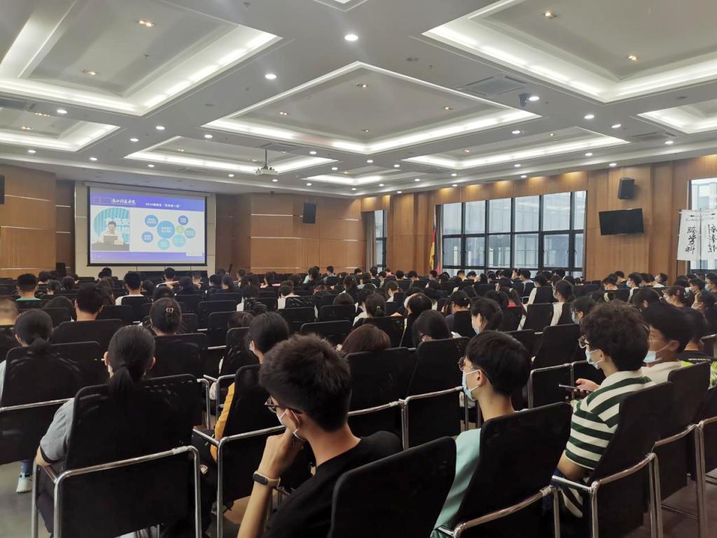 喻运鑫作题为《社会风险及防控》专题报告。他结合自身工作经验,通过大量丰富案例解读了社会风险类型和特征、人类面临的社会风险以及社会风险的防控等知识,并从国家安全、意识形态、公共安全、社会矛盾、经济金融和重大决策等方面向与会师生做详细介绍,帮助同学们更好的适应大学环境,防范在大学初始阶段可能遇到的各类风险,健康快乐地开启大学新生活。