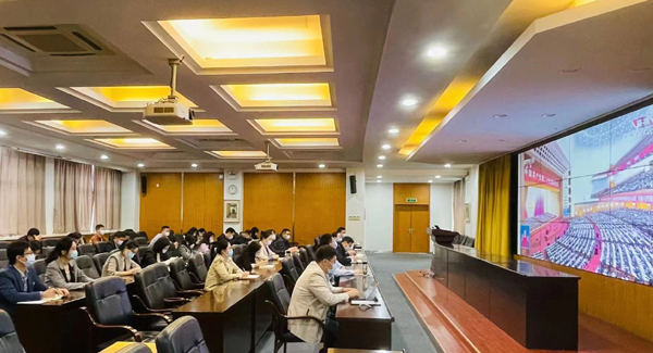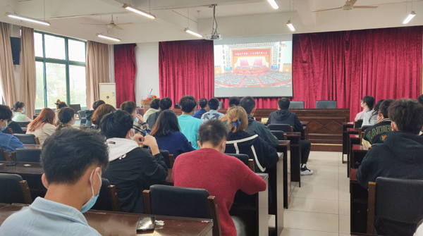 全校师生员工通过电视、电脑、手机等收听收看开幕会实况直播,密切关注大会。