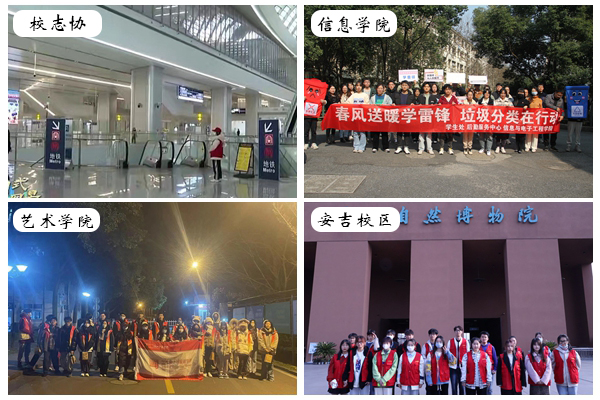在杭州火车西站志愿服务、为社区工作者送温暖、助力绿色学校建设、担任江自然博物院讲解员与场馆指引者……在志愿服务月,校志协志愿者、艺术学院志愿者、信息学院志愿者、安吉校区志愿者等多方联动,丰富拓展各类志愿服务活动,用实际行动诠释雷锋精神的时代内涵。其中在杭州火车西站开展秩序维持、检票引导、行李帮提等服务的志愿者,获央视新闻直播报道。