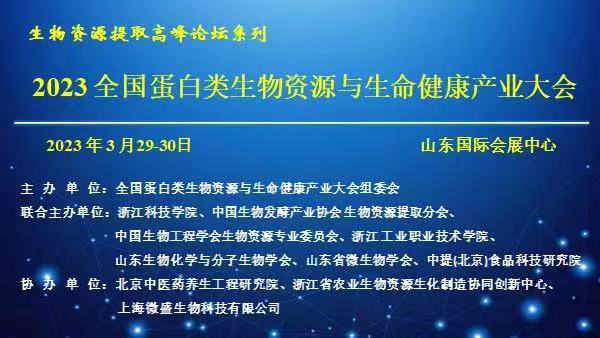 3月29-30日,2023全国蛋白类生物资源与生命健康产业大会召开。本次会议由我校及中国生物发酵产业协会生物资源提取分会、中国生物工程学会生物资源专业委员会、浙江工业职业技术学院、山东省微生物学会等联合主办,为全国生物资源提取高峰论坛之一。