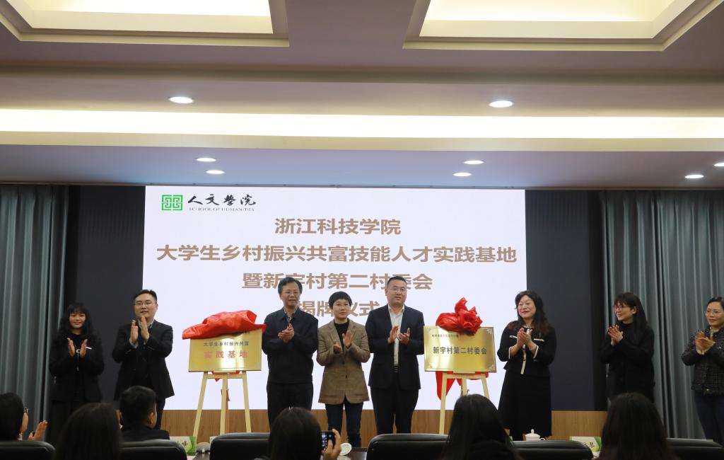 4月6日,我校大学生乡村振兴共富技能人才实践基地暨临平区运河街道新宇村第二村委会成立揭牌仪式举行。校党委副书记符宁平、临平区人民政府副区长张敏等出席。临平区运河街道、乔司街道和新宇村相关负责人,人文学院师生代表参加。新宇村为浙江省共同富裕示范村,近两年与我校人文学院合作开展省级未来乡村建设示范项目共建。