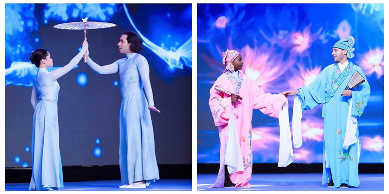 颁奖典礼上,我校留学生表演的歌舞《梦蝶》,将名满中外的爱情故事--《梁祝》与现代浙江的蓬勃发展结合到一起,展现了浙江自古至今经济、文化上的深厚底蕴。