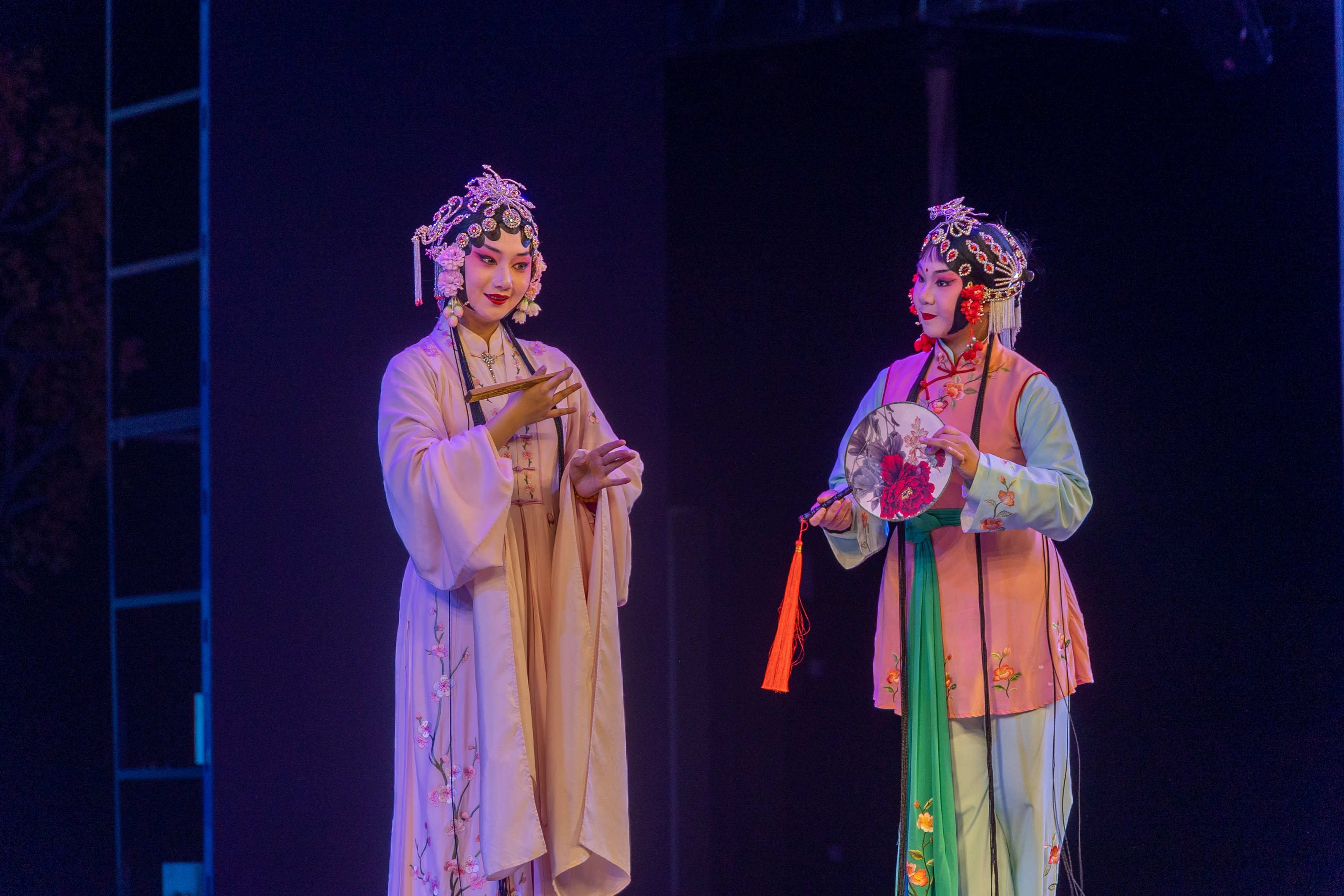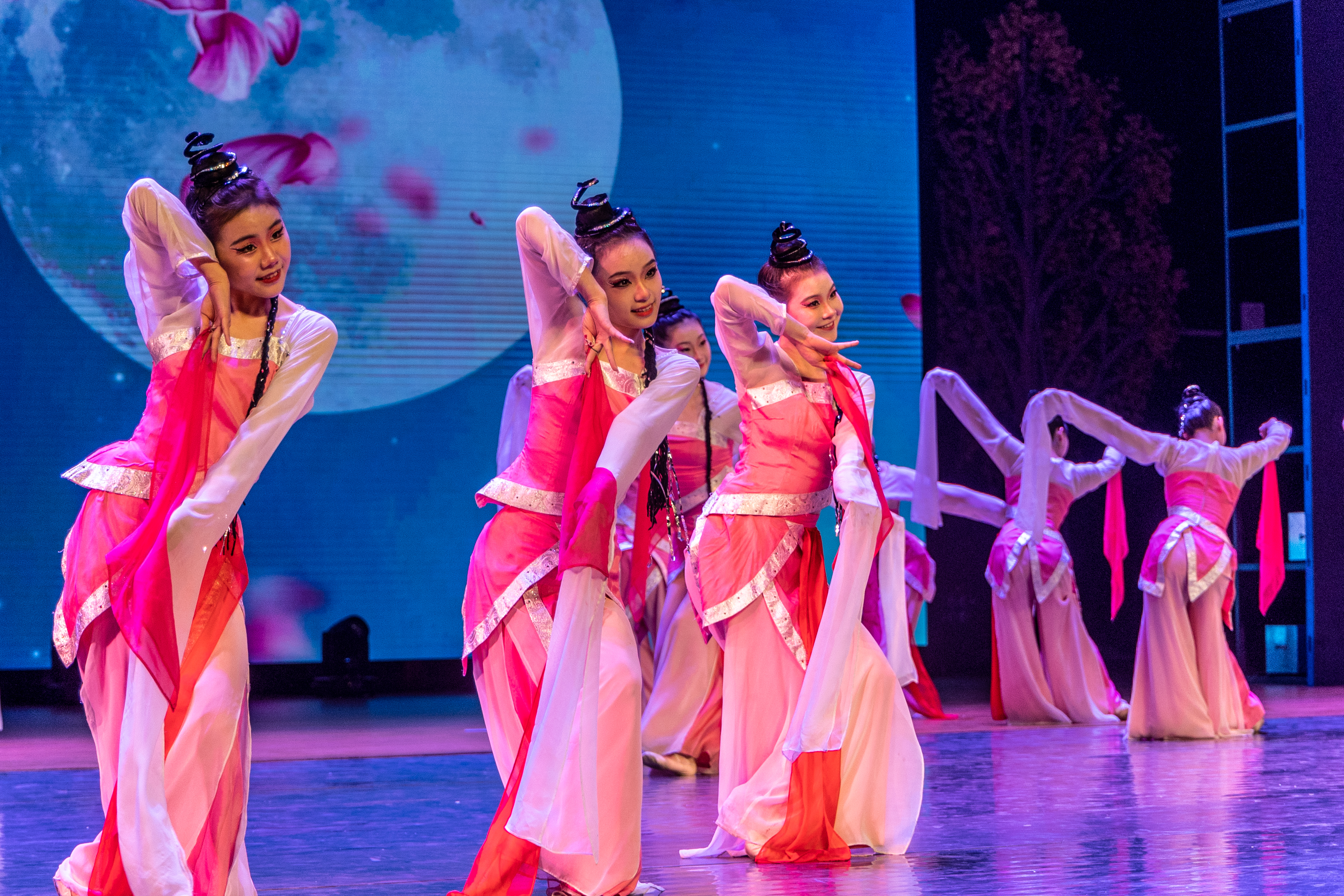 整场演出涵盖舞蹈、歌唱、器乐演奏等多种艺术表现形式,展现了向上向善的社会风貌和源源不断的艺术魅力。演出在独具古典韵味的女子群舞《桃夭》中拉开帷幕,女声独唱《my heart will go on》《决爱》、中阮重奏《天地之间》、男声独唱《山之高》,昆曲《牡丹亭.游园》、笛子独奏《大青山下》,女子群舞《采茶》、男女声二重唱《领航》等十余个节目接连上演,引发观众阵阵掌声。