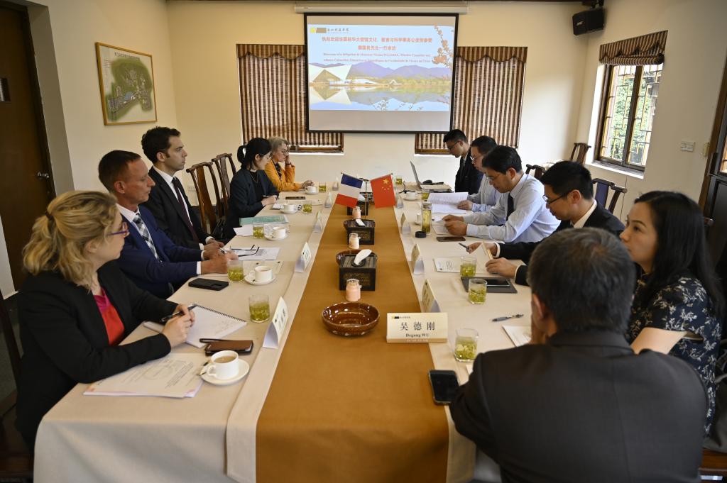 赵东福对法国驻华大使馆长期来对我校工作的大力支持表示衷心感谢。他说,我校与法国高校、科研机构的合作已从人才培养逐步扩大到联合科研、学术研讨等多领域,希望与法方携手努力,共同推动中法两国教育合作与人文交流。 单胜道介绍我校国际化办学的总体情况。他表示,希望在法国驻华大使馆的支持下,我校能与更多法国高水平大学开展交流、深化合作。