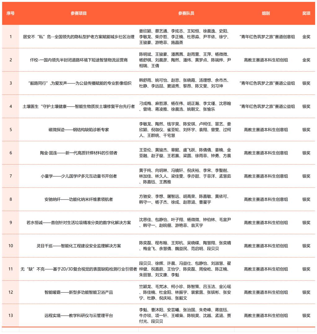 日前,第九届浙江省国际“互联网+”大学生创新创业大赛闭幕式暨颁奖典礼举行。我校参赛项目获金奖2项、银奖11项、铜奖8项,学校获高校集体奖、优秀组织奖。