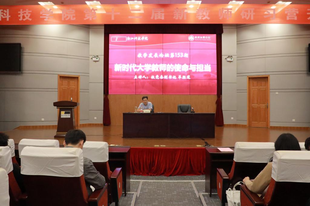 开营仪式后,单胜道作题为《新时代大学教师的使命与担当》的主题报告。他结合当前高等教育发展背景和学校发展实际,希望新教师强化立德树人意识,严守师德底线,弘扬优良师德师风,注重思政教育与专业教育并重,推进实现“三全育人”。他指出,青年教师要抓住学校发展新机遇和个人发展黄金期,积极探索新时代教育教学方法,不断提升教书育人本领,都能成为一名受学生喜欢的好老师,为我校高水平建设特色鲜明的现代化应用型大学贡献自己的青春力量。