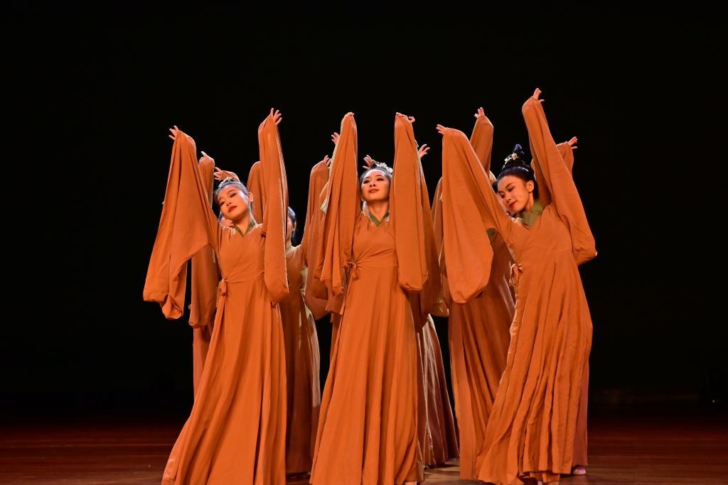 演出分为“红色经典篇”“美育思政篇”“文明互鉴篇”“守正创新篇”四个篇章,涵盖舞蹈、歌唱、器乐、音乐剧等多种艺术表现形式。在高亢浑厚的男高音独唱《嘉陵江上》中演出拉开帷幕,《我爱你中国》道出华夏儿女对祖国的深深情思与爱国之情,《彝族舞曲》《薪火》《秦腔主题随想曲》《扬帆》各具特色的音乐为现场师生带来前所未有的听觉、视觉盛宴,单簧管独奏《遗忘》与《自由探戈》极富感染力和亲和力,深受现场观众喜爱,一舞《秘色羽衣》古朴幽远,感受到山风浩荡、溪水叮咚、小桥茅舍美不胜收;《你的承诺》《甬韵组曲》以通俗曲风重新诠释少年的真善美,表达了青年一代不忘初心、牢记使命,坚定信仰之火,踔厉奋发建新功的坚定和担当,将整场演出推向了高潮。