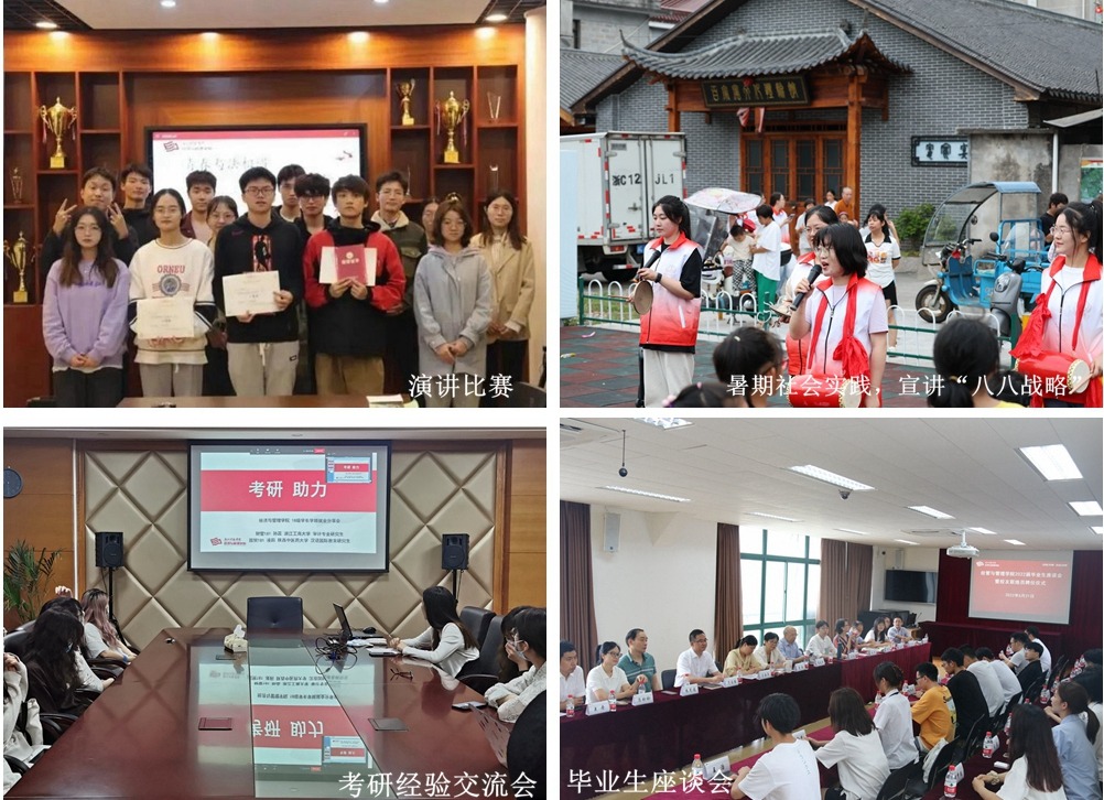 以“创·经彩”学生工作品牌为引领,以“创响之江”等3个工作室为载体,打造“创客下午茶”等4个品牌活动,深化“经彩讲坛”等5个内涵建设,涌现一大批“经”彩学子。获教育部就业先进典型和浙江省基层就业先进典型4人,3年时间考研升学率实现翻番,高质量就业率本科和研究生分别39.2%和60.8%,连续多年获校就业贡献得分第一名。实施“五育并举 体育筑基工程”,连续11年获校运动会团体总分第一名,啦啦操队勇夺全国第一名,在2023年省体质健康抽测中代表学校获校历史最好成绩,服务保障杭州亚运会中学院团委获省“突出贡献集体”荣誉称号,一同学获“杭州亚运会、亚残运会先进个人”省部级荣誉称号。