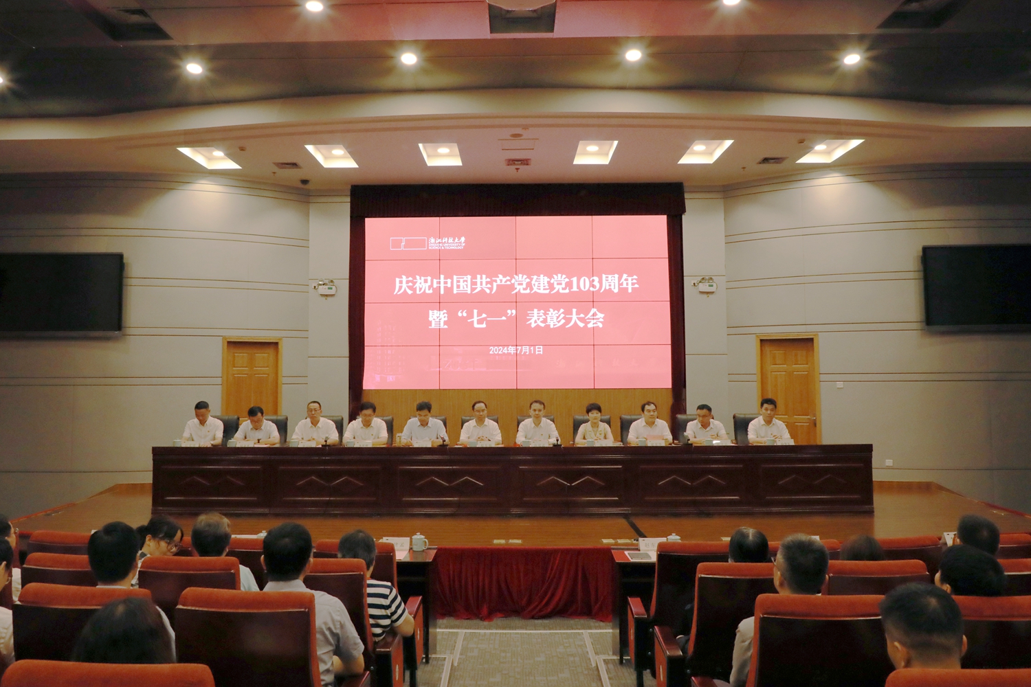 7月1日,学校举行庆祝中国共产党建党103周年暨“七一”表彰大会。校党委书记赵东福、校长陈建孟等校党政班子成员出席。会议由校党委副书记单胜道主持。