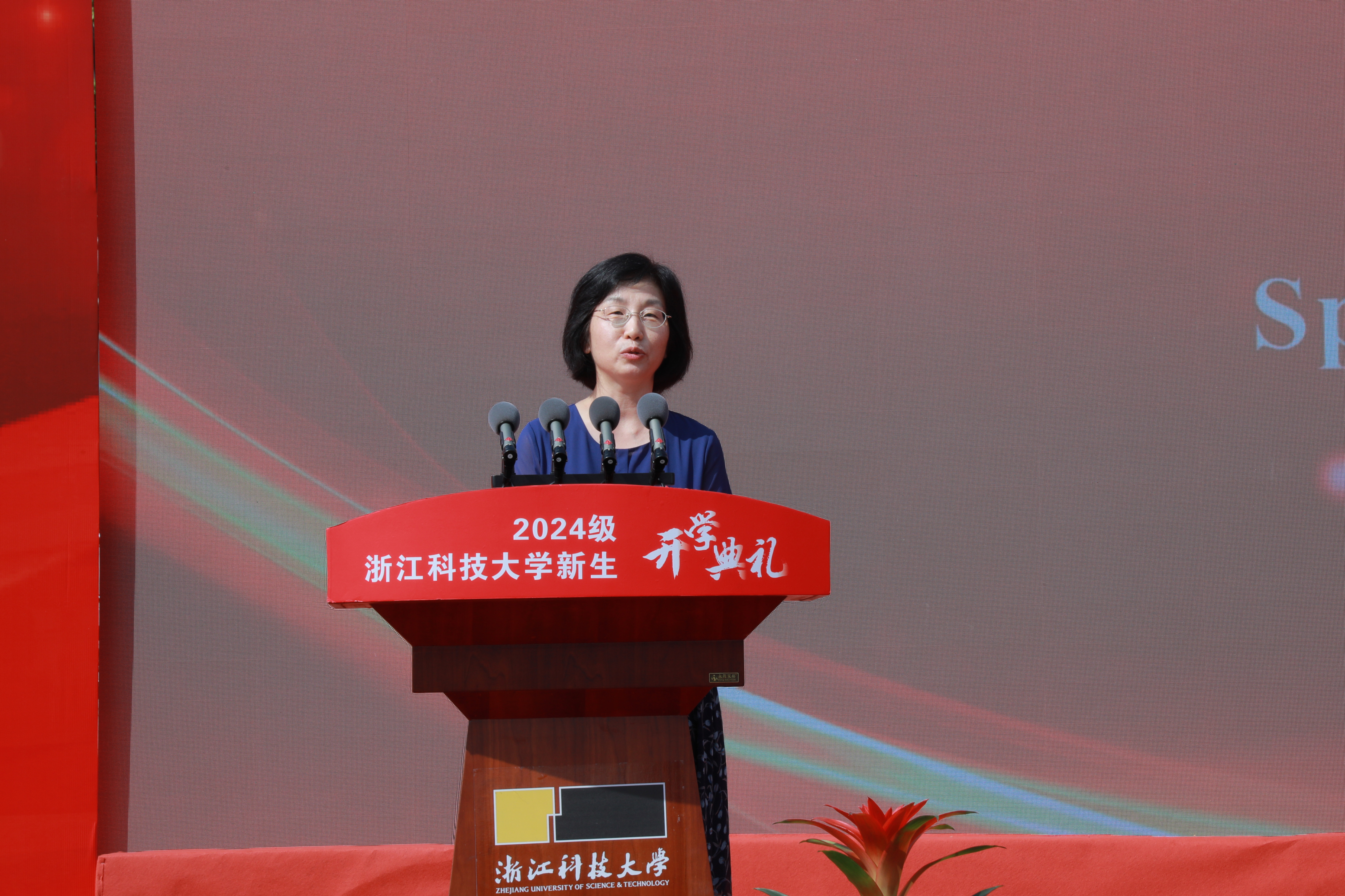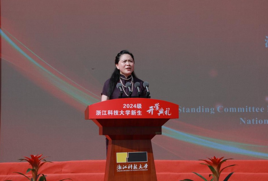 97级服装艺术设计校友、浙江省政协常委、全国妇联执委、“畲凤”品牌创始人兰金美以校友和新生家长的双重身份分享了自己眼中浙科大的发展与变迁。她希望同学们能够继承和发扬浙科大的优良传统,勤于学习,勇于探索和创新,不仅要在学术上有所成就,更要在品德上成为社会的楷模。