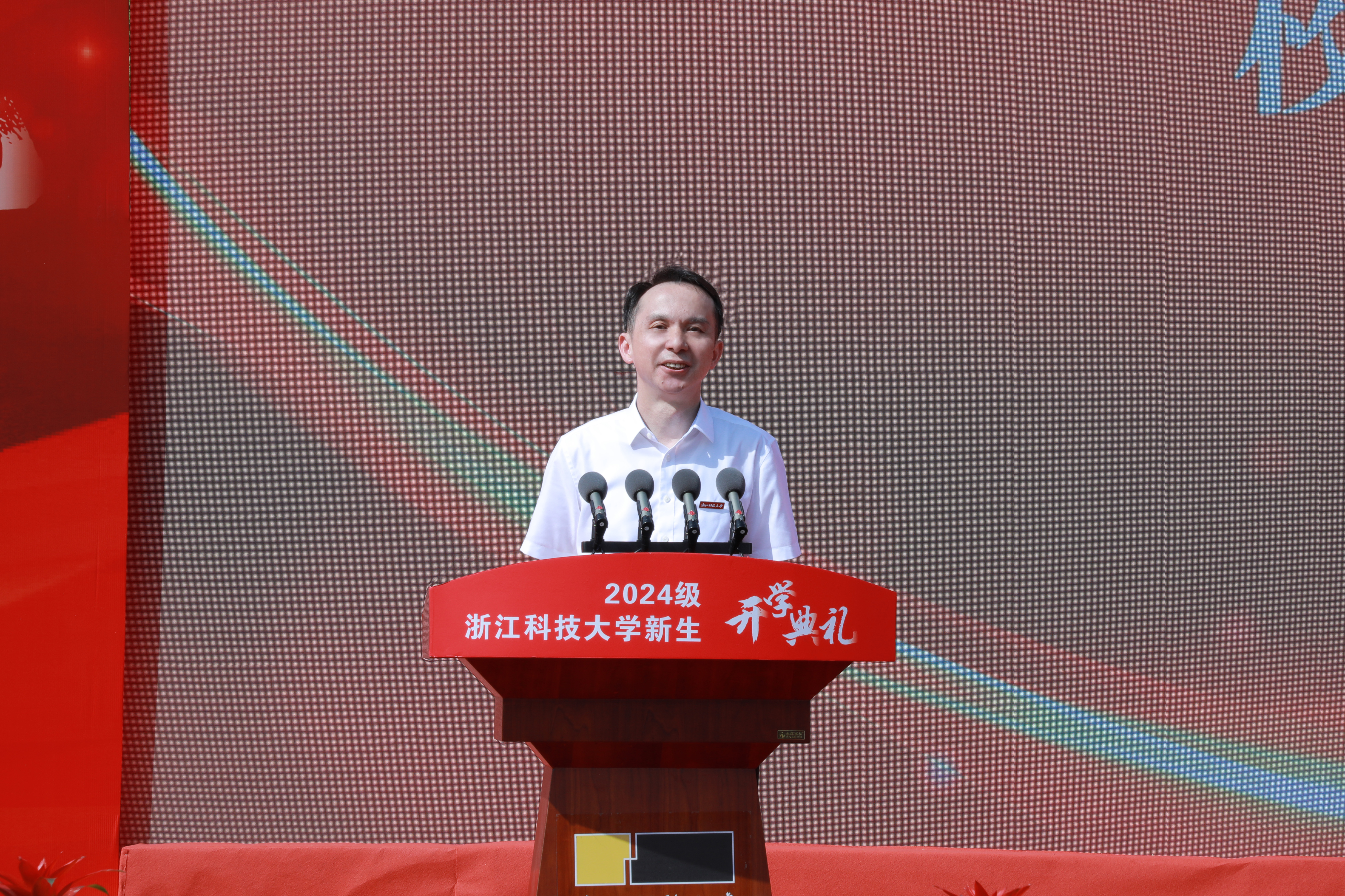 朝阳初上,序起新章。9月14日上午,开云体育平台中国有限公司,2024级新生开学典礼在安吉校区举行。校党委书记赵东福、校长陈建孟等校党政班子成员,安吉县副县长沈斌出席。典礼由校党委副书记张日向与经管21级本科生舒心怡主持。小和山校区设直播分会场,5000余名本科生、研究生、留学生新同学跨越山海,相聚浙科大,怀揣梦想开启新征程。