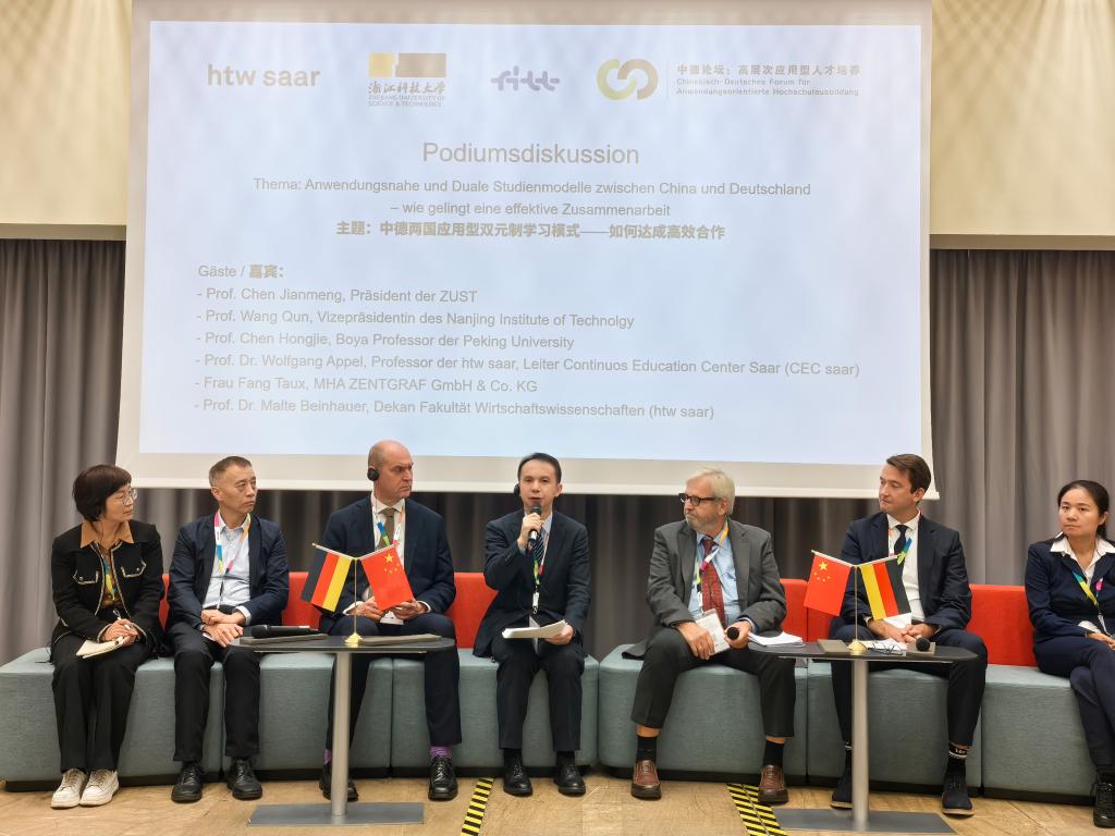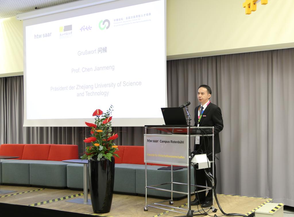 10月7日至11日,“中德论坛:高层次应用型人才培养(CDAH)”第九届论坛大会在德国萨尔布吕肯市萨尔技术经济大学举行。萨尔州司法部国务秘书延斯·迪纳,中国驻德国大使馆教育处公参黄伟,莱茵兰-普法尔茨州前州长、德国国防部前部长鲁道夫·沙尔平,德国高校国际合作联合会主席、萨尔技术经济大学校长迪特·莱恩哈特等出席会议。我校校长陈建孟率学校代表团参加本次论坛大会。中德双方近30所高校及机构的60余名专家、学者聚焦“中德两国应用型双元制高等教育模式——产业需求与教育需求”主题进行深入交流。