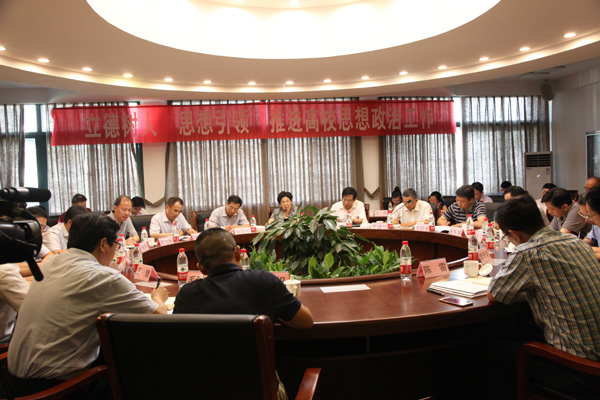 王建华从加强党的领导、注重齐抓共管、突出价值导向、严格阵地管理、营造文化氛围等五个方面介绍了我校思想政治工作的做法和经验,并对照政治巡视、两学一做和省委要求,查找了我校思想政治工作的不足和困难,还对如何进一步做好高校思想政治工作的提出了思考和建议。