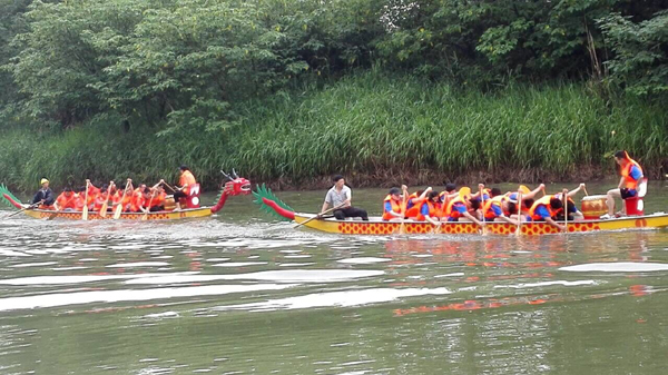 我校两支队伍由李俊波老师领队参加比赛。这也是我校首次参加龙舟赛。学校高度重视,年前就进行准备工作,本学期开学后从野外生存俱乐部选出10位女生,16位男生,组建科院龙舟队。4月进行水上模拟训练,5月进入集中训练,一周训练四次,每次训练两个半小时。李俊波老师说,“参加龙舟比赛是我校根据特殊的地理优势,深化俱乐部改革的结果。”