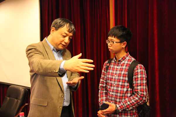 孙教授通过通俗的语言、精准的描述,深入浅出为大家讲解了大数据与自然语言的处理, 随后的互动环节孙茂松回答了同学的提问,并就相关问题与同学们展开了热烈讨论。