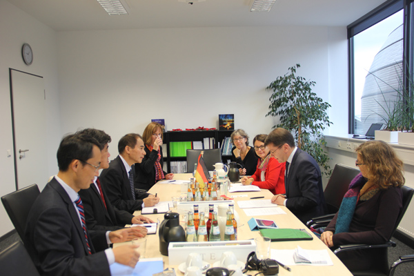 叶高翔一行与基尔大学副校长卡琳·施瓦尔茨就学生交换项目、暑期游学项目、科研合作项目等交换意见。双方一致表示将着力推动我校学生赴德访学和游学项目,并为双方教师科研合作创造条件。在汉诺威应用科技大学,两校共同回顾了双方30年的合作历程,并举行工作会谈,就中德联合培养本科生2+3项目德语语言确认考试改革等作探讨。会谈后,叶高翔与该校校长冯·赫尔顿共同为“30年的成功合作——汉诺威应用科技大学和浙江科技学院”雕刻作品揭幕,该作品将由汉诺威应用科技大学赠送我校,并置于我校中德友谊园中。叶高翔一行与哥廷根大学副校长何艾烨(Hiltraud Casper-Hehne)就师生交流项目、语言类和专业青年教师进修项目、暑期游学项目等进行交流。叶高翔表示,我校将着力做好双方正在开展的师生交流项目,力争派出更多教师和学生赴哥廷根大学进修或学习。