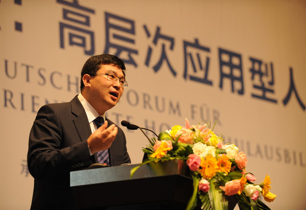 10月26日至30日,“中德论坛:高层次应用型人才培养(CDAH)”第五届论坛大会在宁波工程学院召开。教育部评估中心主任吴岩、省教育厅副厅长于永明、宁波市副市长张明华等出席开幕式。我校副校长郑友取率团参会。
