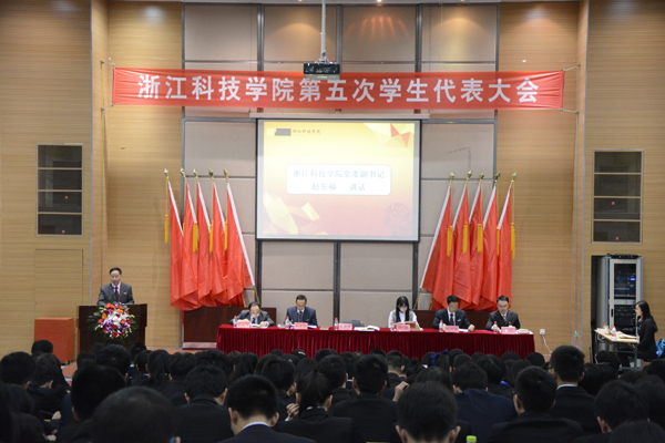 11月7-8日,校第五次学生代表大会召开。校党委副书记赵东福、省学联执行主席许溪出席开幕式并讲话。学校相关关职能部门和各二级学院负责人,各分团委书记,浙江大学、浙江工业大学、浙江理工大学等14所兄弟院校代表到会祝贺。北京大学学生会也发来来贺信。来自两校区的297名学生代表参加会议。