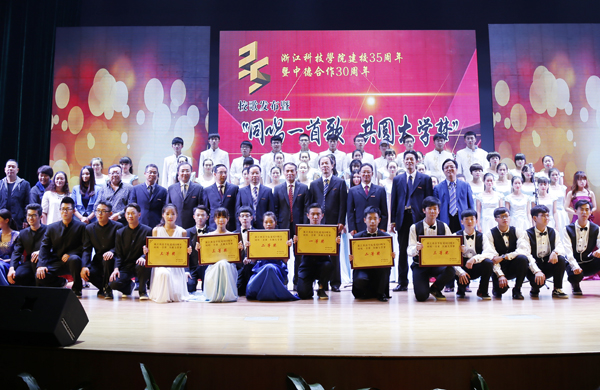 校歌发布仪式后,“同唱一首歌,共圆大学梦”大合唱比赛举行,安吉校区近千师生共同唱响《浙科大树》。